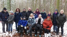 Übergabe mit musikalischer (Tuba und Alphorn) und kulinarischer (Glühwein und Gebäck) Umrahmung unter Mitwirkung der "Dusenbacher Dorfhinkel" mit Gickel und Kücken, dem Ersten Stadtrat Werner Seibert, Qigong-Freunde und Familienmitglieder sowie dem Alpen-Karl (Karl Hallstein).